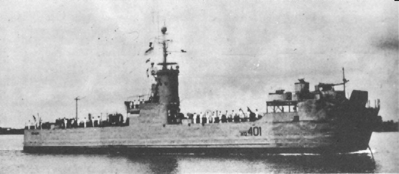 59k | RVNS Han Giang (HQ-401) underway, circa 1960, location unknown. Official South Vietnamese Navy photo, from "Jane's Fighting Ships" 1961-62 edition. |