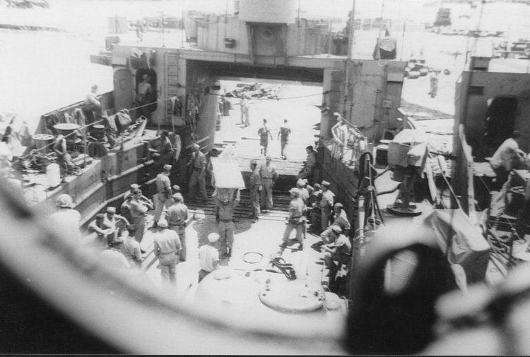 69k | USS LSM-116, loading for the Okinawa Invasion at Saipan, March 1945. | Photo by H. E. Freeman PhM/1c, LSM-116 now in the collection of Robert C. Lozmack, BM/2c, LSM-116 and LSM-467 |