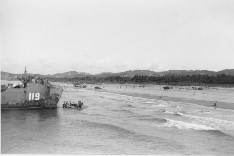 44k | USS LSM-119 beached at Wakayama, Japan for occupation duty, September 1945. | Photo by H. E. Freeman PhM/1c, LSM-116 Now in the collection of Robert C. Lozmack, BM/2c, USS LSM-116 and USS LSM-467 |