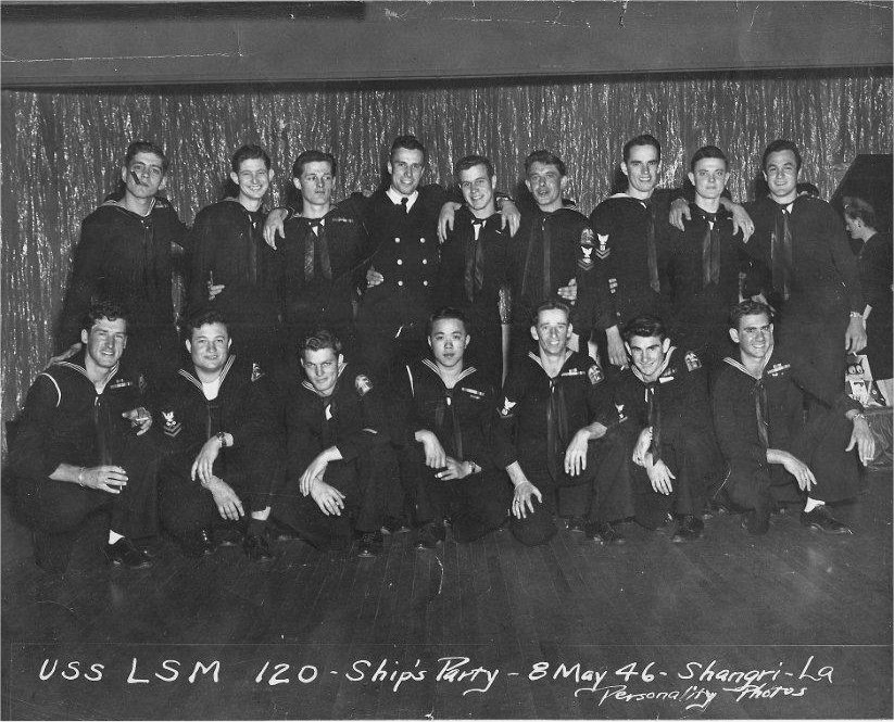 146k | USS LSM-120 decommissioning crew party, 8 May 1946, location unknown. Albert I. Vote is to the left of the officer in the center of the photo. | Jess Vote for his father Albert I. Vote USS LSM-120 | |