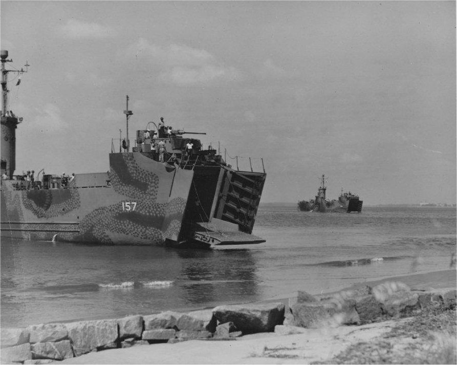 93k | USS LSM-157 and USS LSM 156 during beaching operations, date and location unknown. | Tommy Tramp and USS LSM / LSMR Association |