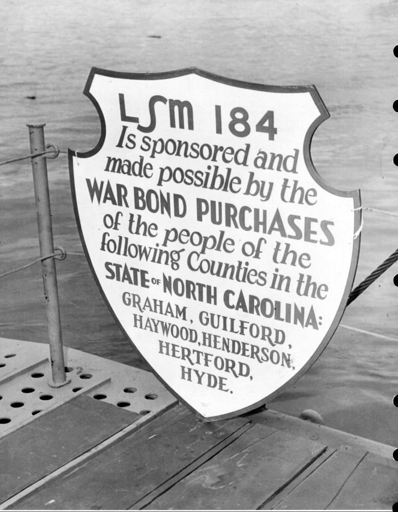 120k | Sponsor plaque displayed at the commissioning of USS LSM-184 | LT Albert C. Noble USNR, CO LSM-184 to the USS LSM / LSMR Association | |