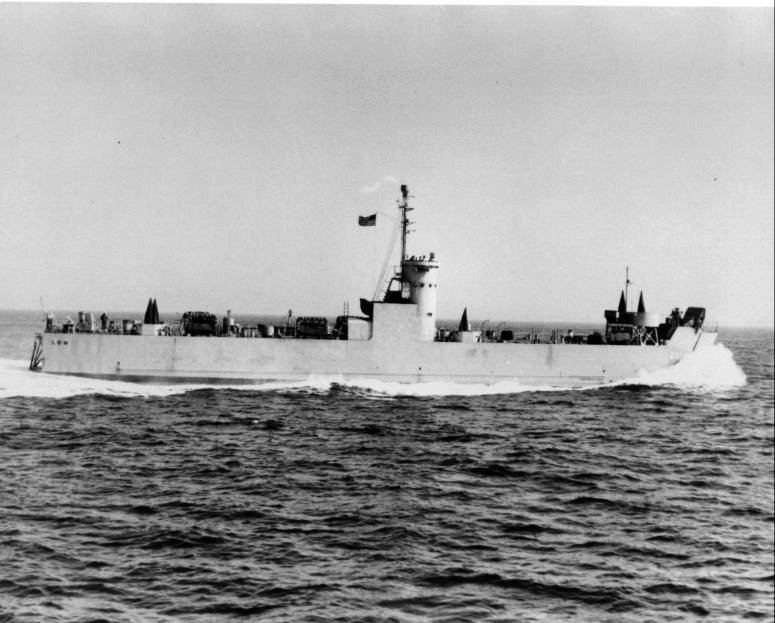 80k | USS LSM-201 underway off Cape Hatteras during her shakedown cruise, 8 May 1944. US Navy photo # NH 228634 from the collections of the US Naval Historical Center. |