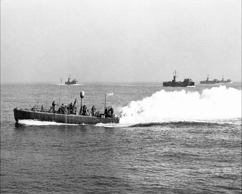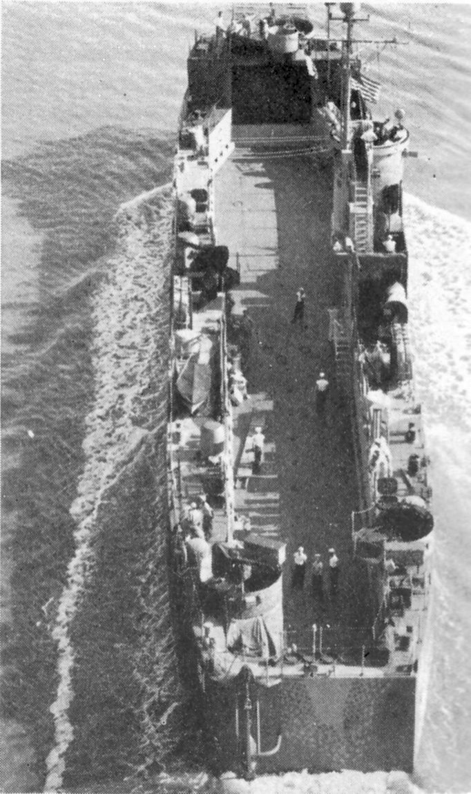 120k | USS LSM-201 overhead view while underway in Chesapeake Bay in May 1944. US Navy photo. |