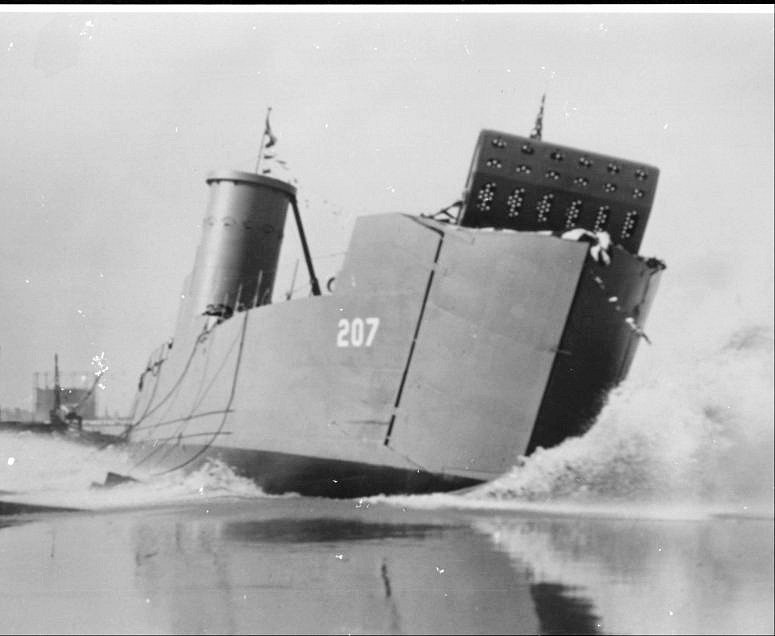 50k | LSM-207 side launching at Dravo Corporation, Wilmington, DE., 29 April 1944. | USS LSM / LSMR Association | |