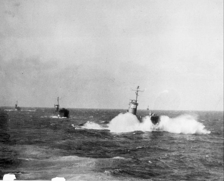 USS LSM-218 and at the rear, left to right, USS LSM-269 and USS LSM-219,