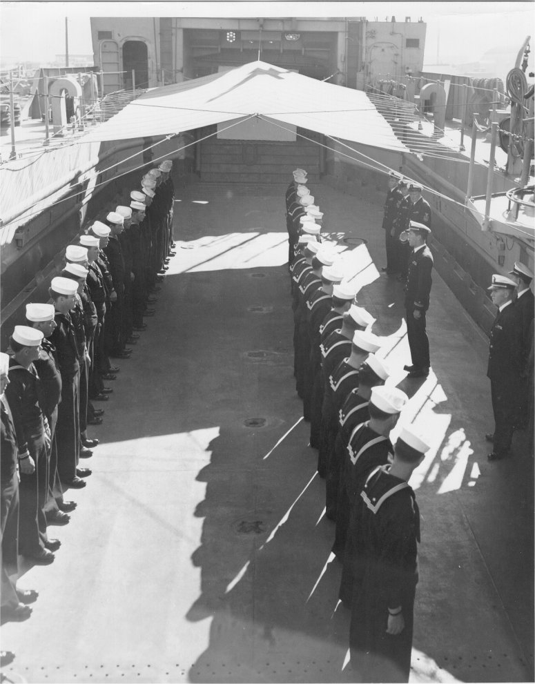 120k | USS LSM-226 personnel inspection, circa 1950-51. | Robert Avina, for his father Joe Avina QM2 (USS LSM-226, USS LST-461 WW2 and Korea) | |