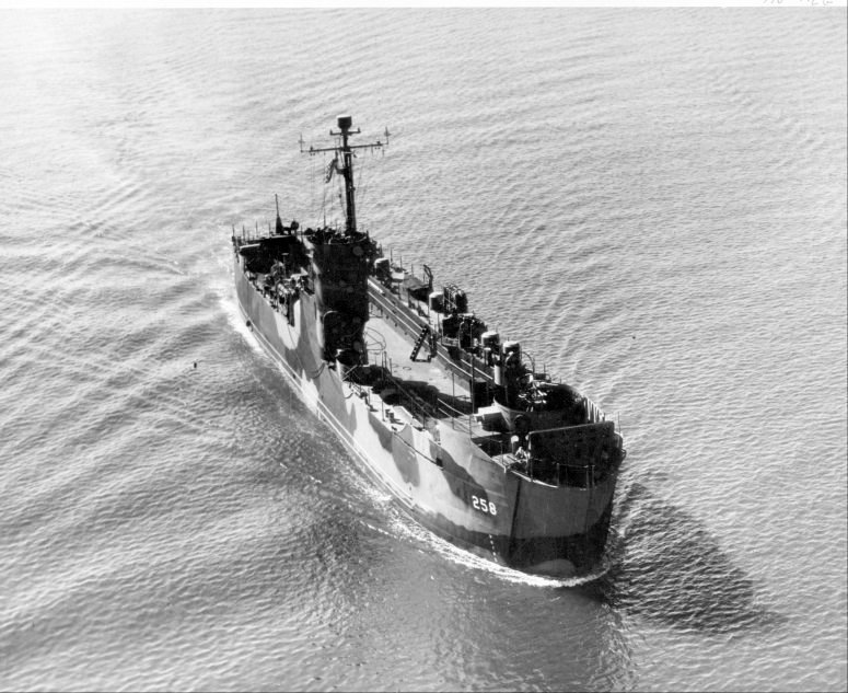 134k | USS LSM-258 underway, in Hampton Roads, 23 July 1944. aerial stern view. US Navy photo # BUAer 235808, released 30 January 1945. |