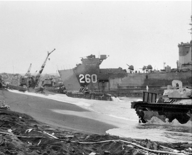 95k | USS LSM-260, unloading during the invasion of Iwo Jima, circa 19 February to 16 March 1945. US Navy photo |