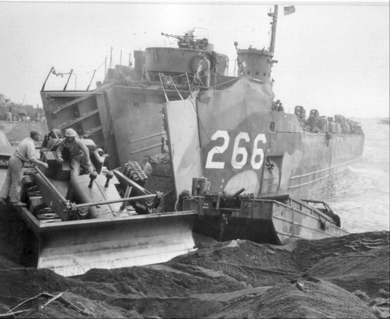 82k | USS LSM-266 beached on Green Beach at Iwo Jima, February 1945. US National Archives photo # 80-G-318047 a US Navy photo now in the collections of the US National Archives. |