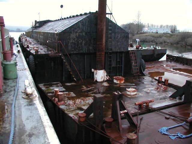 Ex-USS LSM-283, Tidewater Barge Line's Barge # 76 now in use as a SPUD-Barge (tie-off barge), March 2003. |