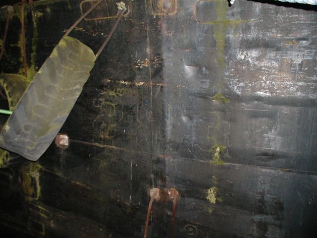 Ex-USS LSM-283 side number still visible on her bow after nearly 50 years of use, March 2003. |