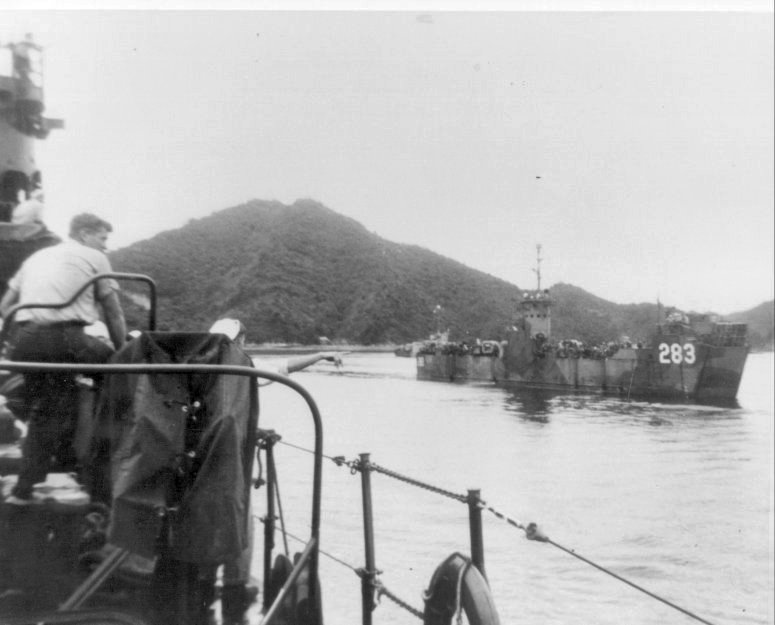 USS LSM-283 under way at Sasebo Harbor, Kyushu, Japan in September 1945. Photo taken from USS LSM-343 |