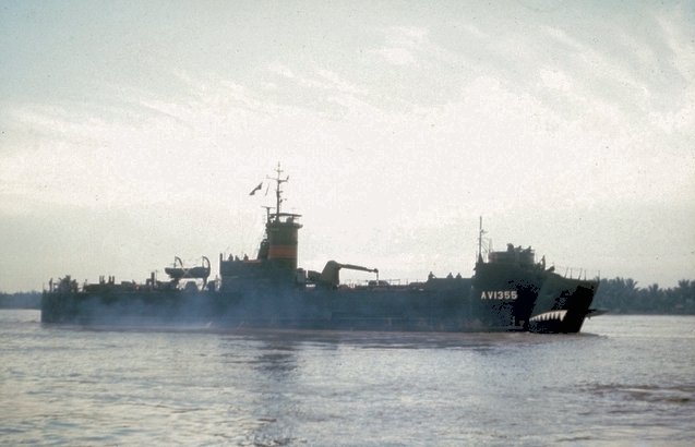 42k | Vernon Sturdee (AV-1355) reverses off the landing at Saigon in June 1966 after transporting heavy equipment to the