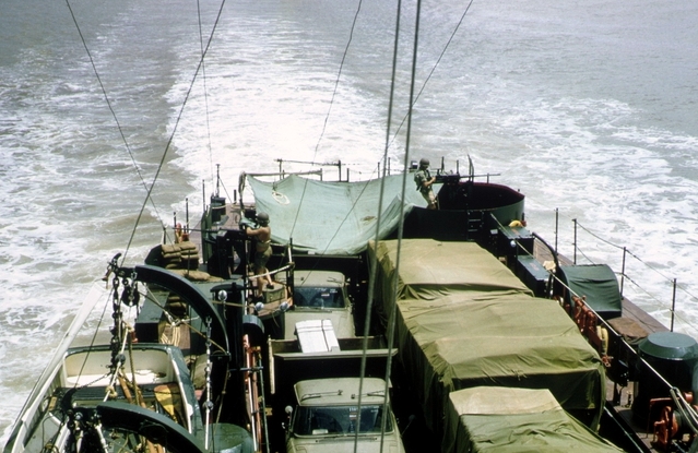 Australians based at Vung Tau. Note that the bow doors are open, as the ramp is still being raised. Australian War Memorial, Photo No. P02679.001 |