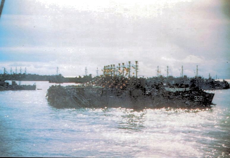 53k | USS LSM-328 and USS LSM-380 beached at Guam in 1945 | Nick Roth to the USS LSM / LSMR Association | |