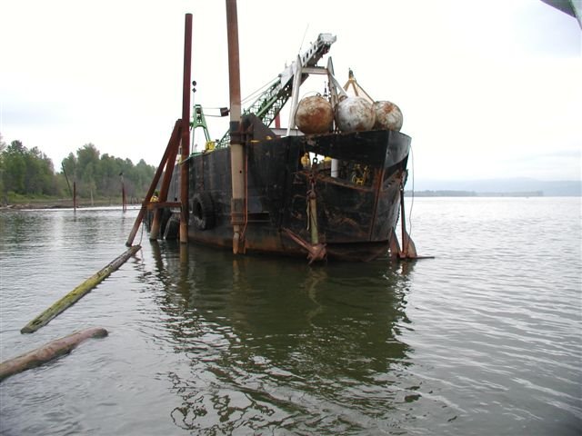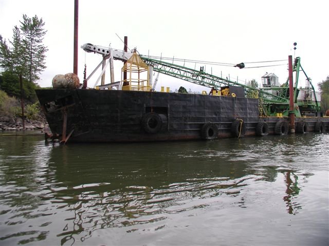 64k | Work barge Amazon on the Columbia River, April 2003. | Photo by Ron Gray, Capt. | |