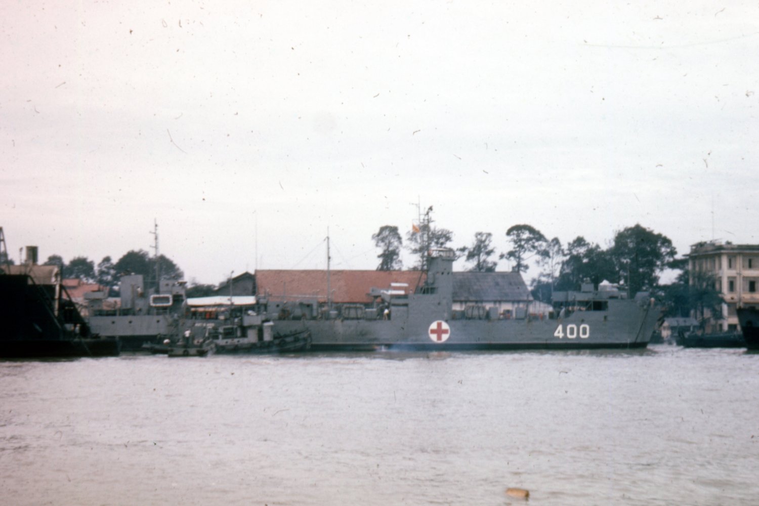 138k | RVNS Hat Giang (HQ-400) Armed Hospital Ship, moored pierside, October 1967.