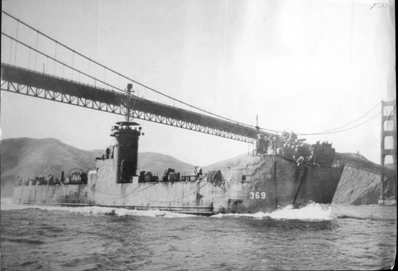 66k | USS LSM-369 entering San Francisco Bay after passing under the Golden Gate Bridge, date unknown. | Bill Skrocki to the USS LSM / LSMR Association | |