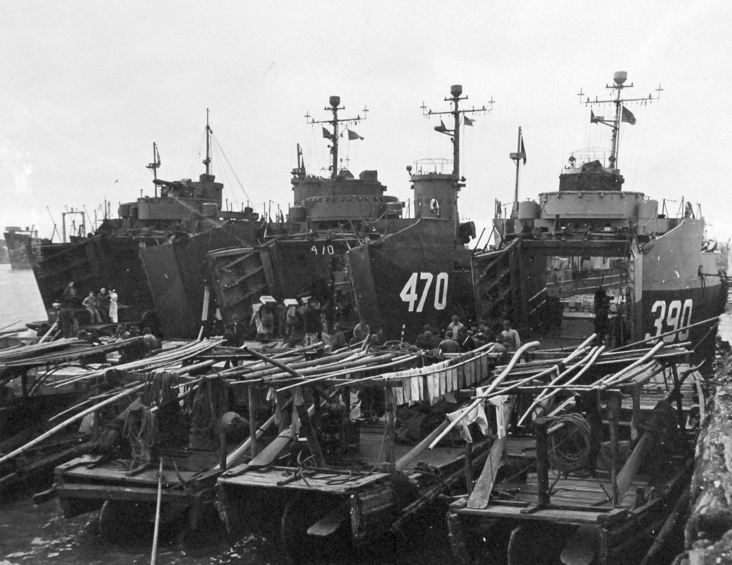 318k | USS LSM-157, USS LSM-470, and USS LSM-390 moored together while performing China Service, 12 March 1946. | National Museum of the US Navy | |