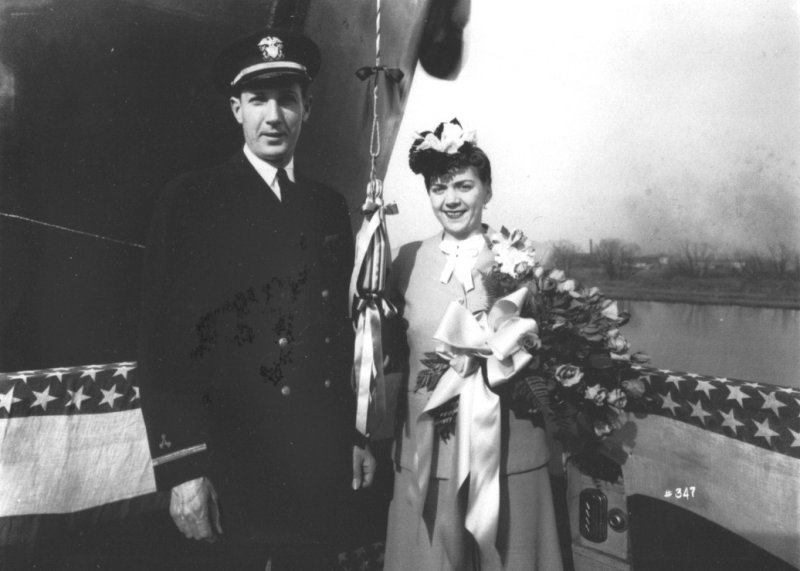 60k | LSM-439 sponsor, Mrs, Thomas G. Smith, at the launching at Dravo Corporation, Wilmington, DE., 19 March 1945. | Marie A. Hart | |