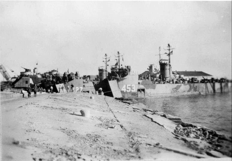 68k | USS LSM-453, USS LSM-427, an unidentified LSM and LST beached on a seaplane ramp in Japan while loading/off loading equipment and supplies while performing occupation duty, date and place unknown. | USS LSM / LSMR Association | |