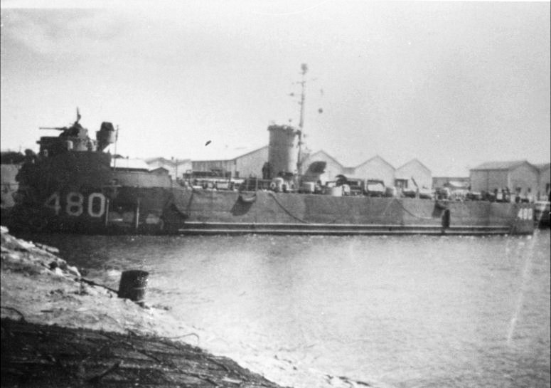 USS LSM-480 moored pierside at Yokosuka, Japan, October 1945. |