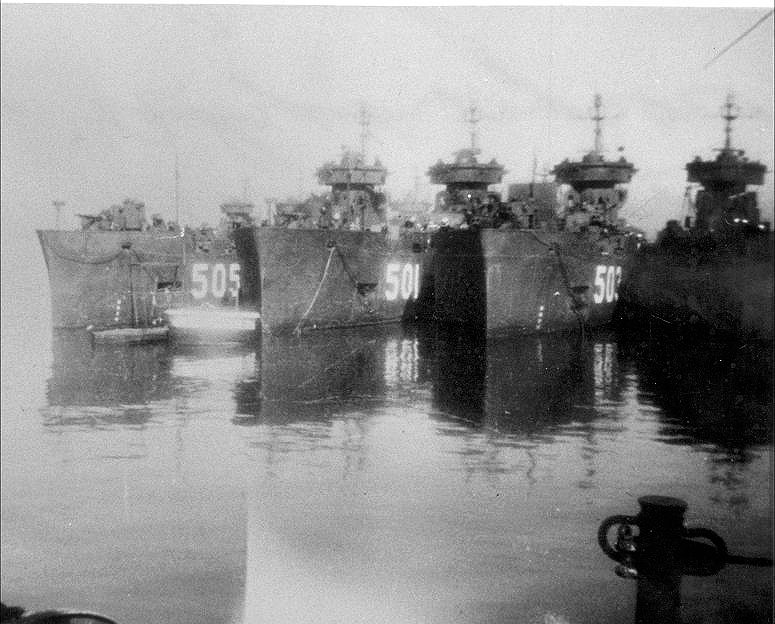 88k | USS LSM(R)-505, USS LSM(R)-501, USS LSM(R)-503 and an unidentified LSMR moored in a nest, date and place unknown. | Innocent Hoel to the USS LSM / LSMR Association | |