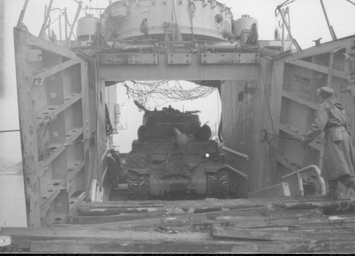 54k | USS LSM-546 unloading a Sherman Tank at Shiogama, Japan, date unknown. | Richard Jacobson, Photo Courtesy Jim Tusing LSM-372, Editor "Alligator Alley" The Newsletter of the USS LSM - LSMR Association |