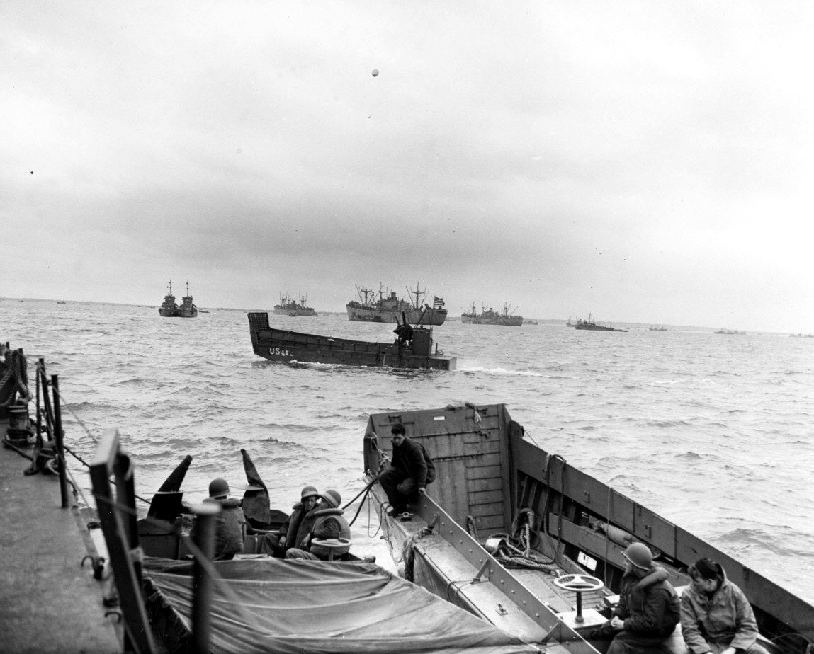 225k | A convoy of Landing Craft Infantry (Large) sails across the English Channel toward the Normandy Invasion beaches on "D-Day", 6 June 1944.