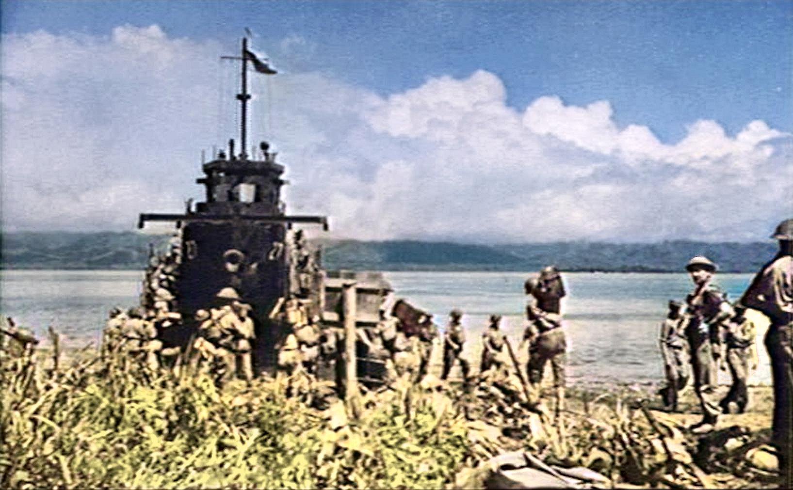 70k | Troops of the 29th Australian Infantry Brigade, 5th Australian Division embarking in USS LCI(L)-27, 15 July 15 1943,