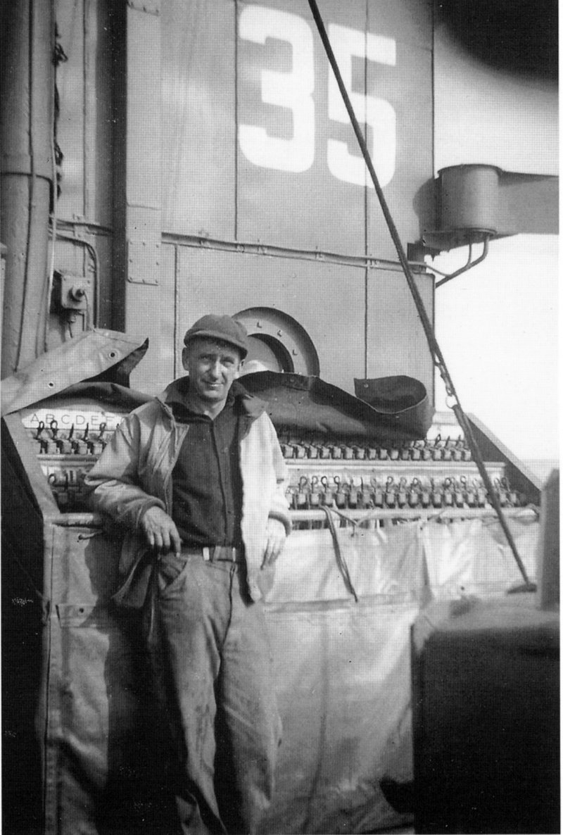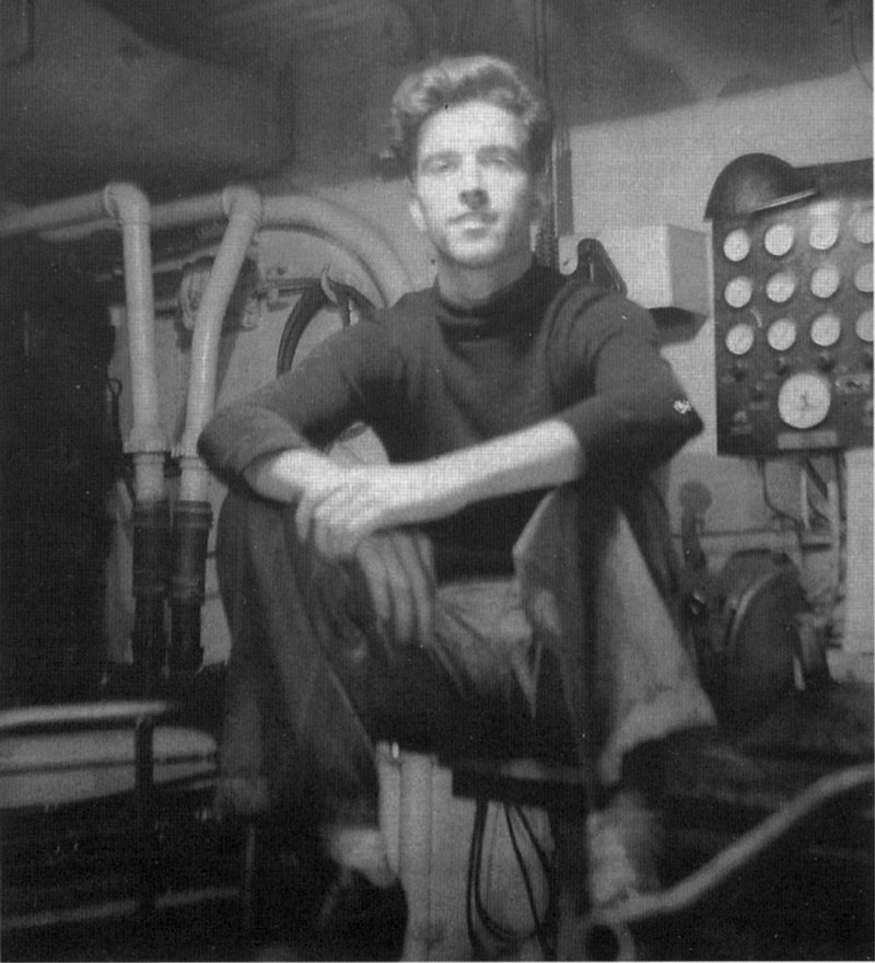 109k | USS LCI(L)-35 crew member, Motor Mac Phil Reed in the Engine Room. Photo from the May 2015 issue of the USS LCI Association's newsletter "Elsie Item", courtesy Phil Reed. |