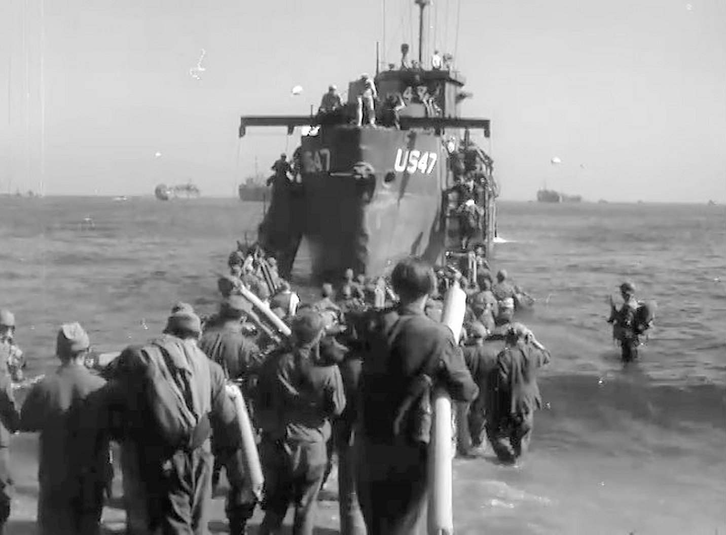 155k | At 1630 on 15 August 1944 USS LCI(L)-47 beached on Red Beach (Alpha) off Southern France. There, she offloaded her complement