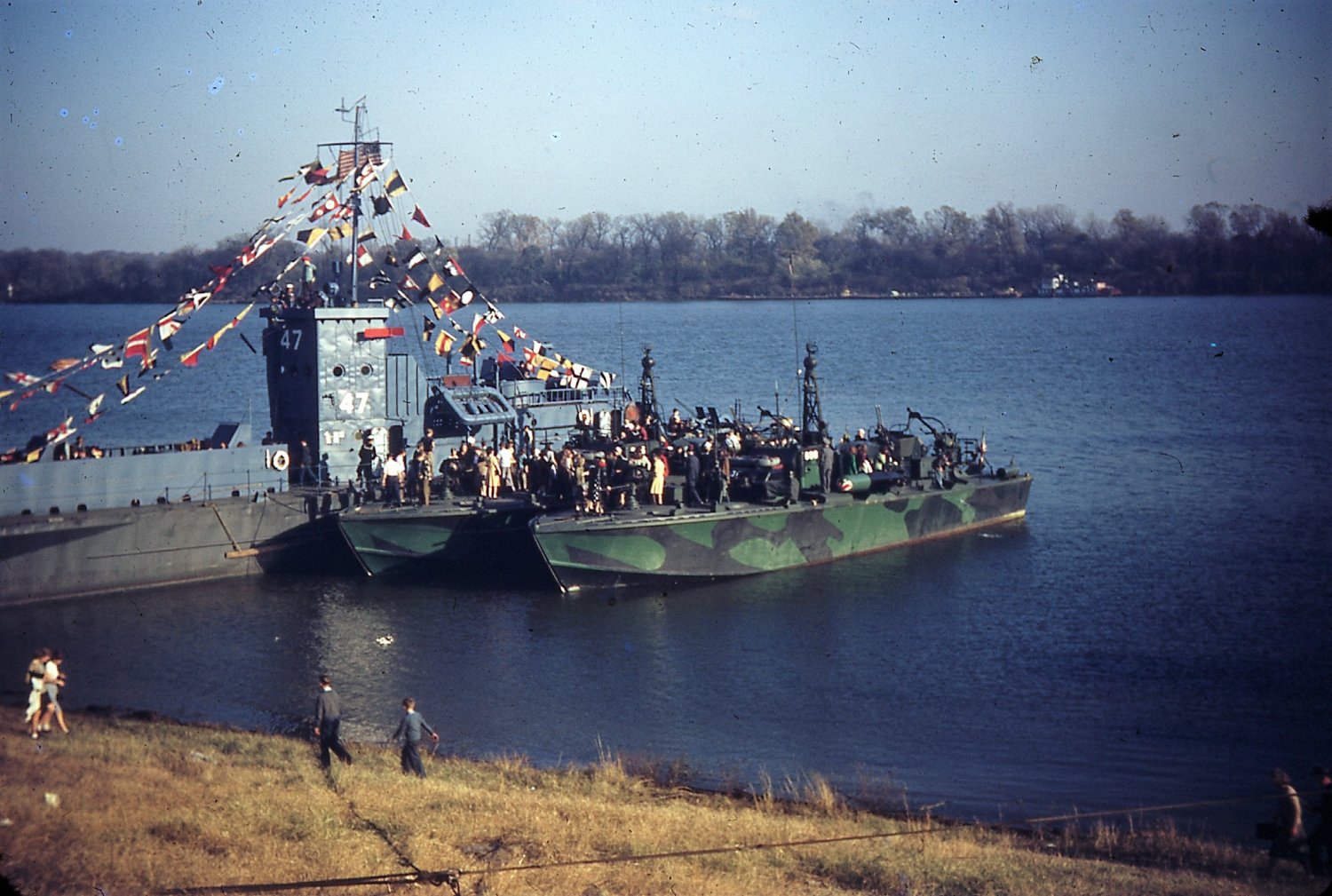 282k | USS LCI(L)-47 moored at Jeffersonville Bridge and Machine Co., Jeffersonville, IN. with two unidentified PT boats, date unknown | Bill Glass | |