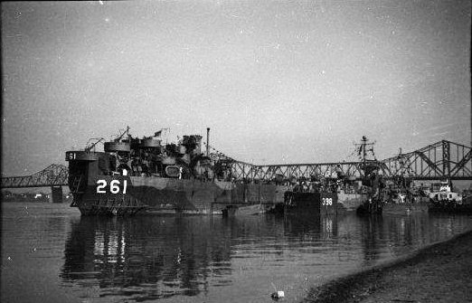 85k | USS LST-261 moored along with USS LSM-398 and USS LCI(L)-47 at Jeffersonville Bridge and Machine Co., https://www.navsource.net/archives/10/15/ Jeffersonville, IN., date unknown. | Tommy Trampp | |