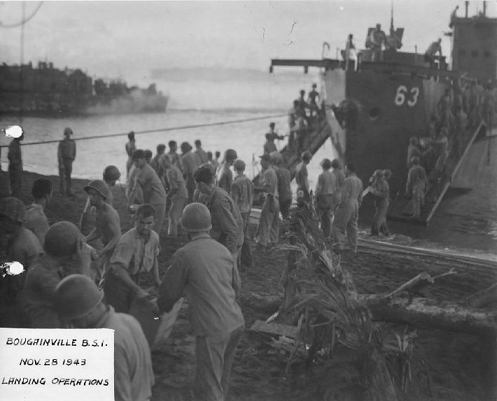 153k | USS LCI(L)-63 beached at Bougainville, British Solomon Islands, 23 November 1943.