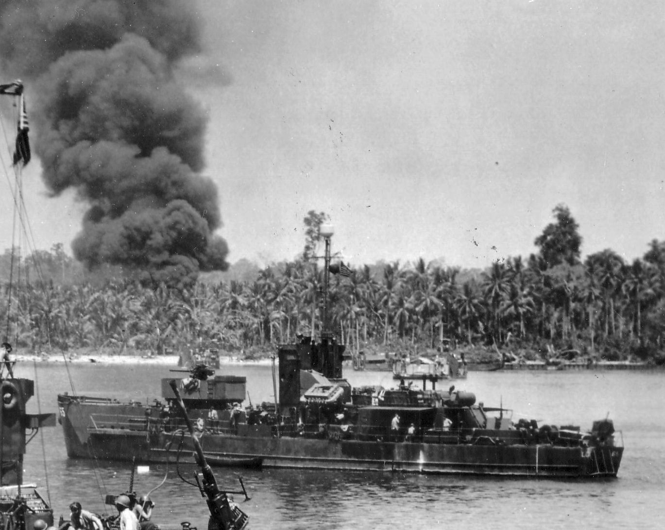 376k | USS LCI(G)-65 (near background) and USS LCI(G)-64 attack the area