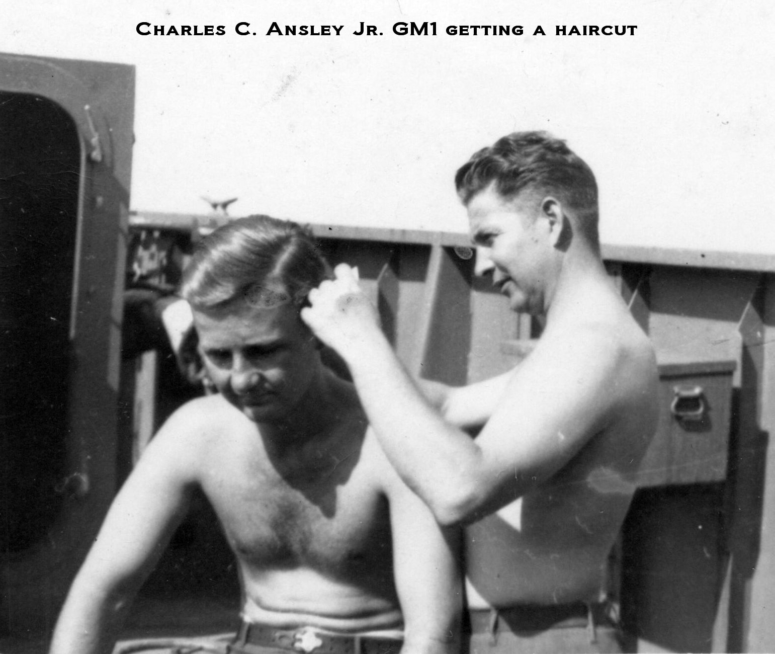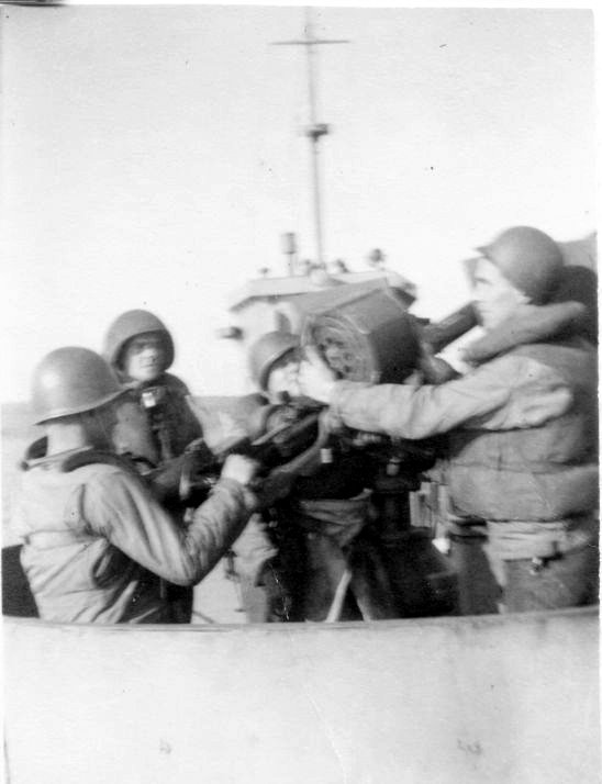43k | GM1 Charles C. Ansley Jr. firing the 20mm bow gun aboard USS LCI(L)-84, date and location unknown. | Peter Ansley for his father Rev. Charles Coke Ansley Jr. USS LCI(L)-84 | |