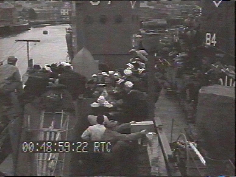 256k | USS LCI(L)-87, USS LCI(L)-84 and USS LCI(L)-497 tied up in the background along with Royal Navy landing craft, (LCA)s preparing to sail the English Channel and invade Nazi-occupied France. These landing craft landed US troops on Omaha Beach. USCG photo, date unknown. A US National Archives photo from the USS National LCI Association newsletter "The Elsie Item" April 2009 issue, Courtesy Dennis Blocker. |