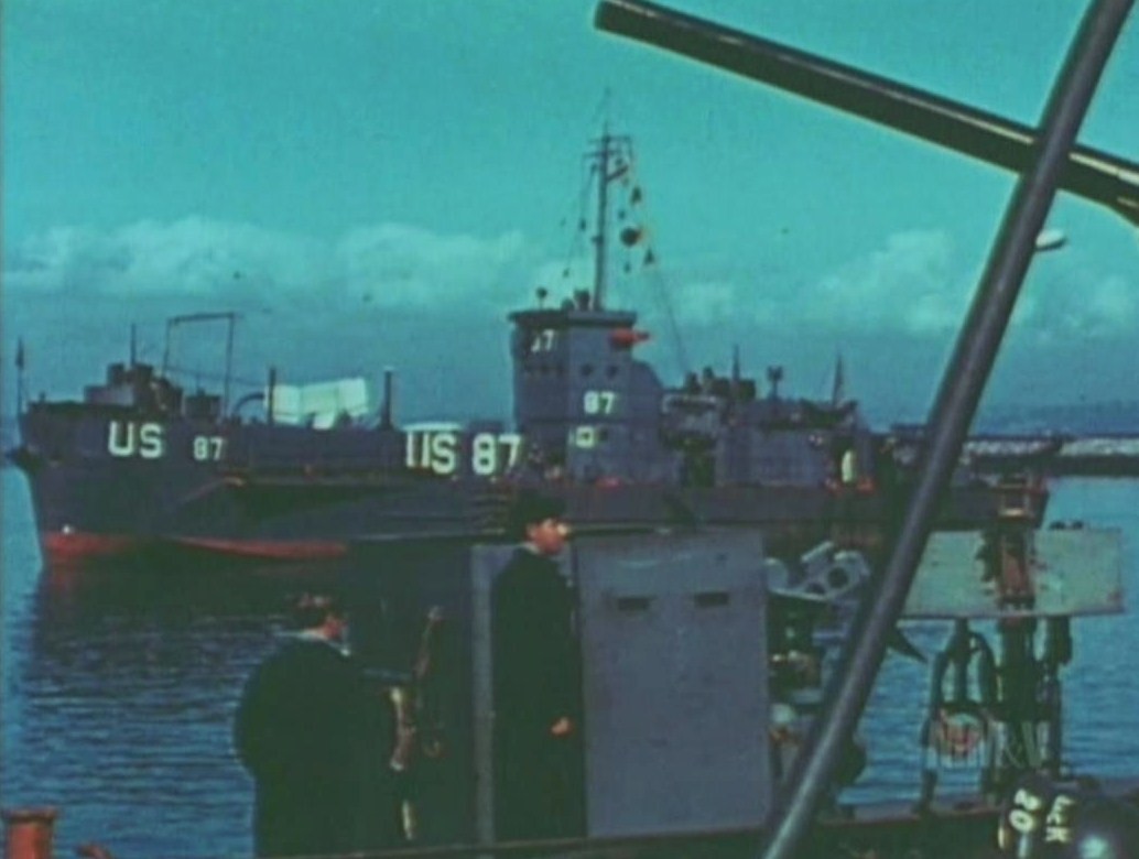 background. Photo is from the USS LCI National Association's newsletter "The Elsie Item", March 2002, photo courtesy of Alex Bosmony USS LCI(L)-87. |
