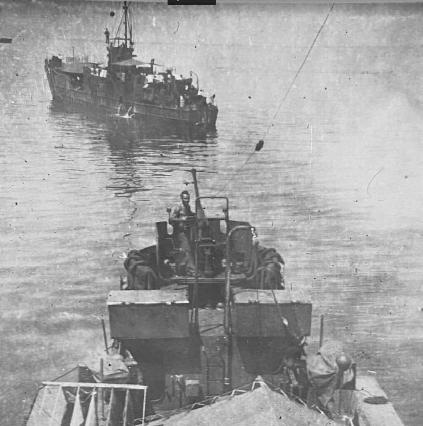 In the background is APL-14 non-self propelled barracks craft. Photo by Arthur Levine, GM2/c |