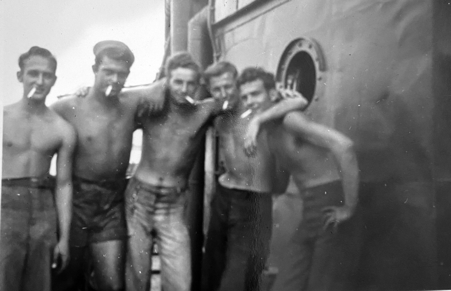 212k | Undated USS LCI(R)-337 shipmates photo. | Photo by Arthur Levine, GM2 USS LCI(R)-337, donated by Marc S. Levine | |