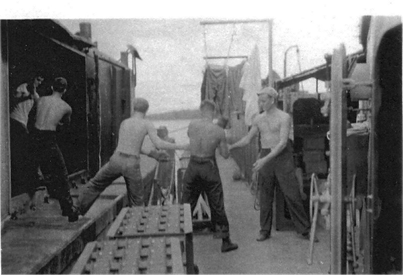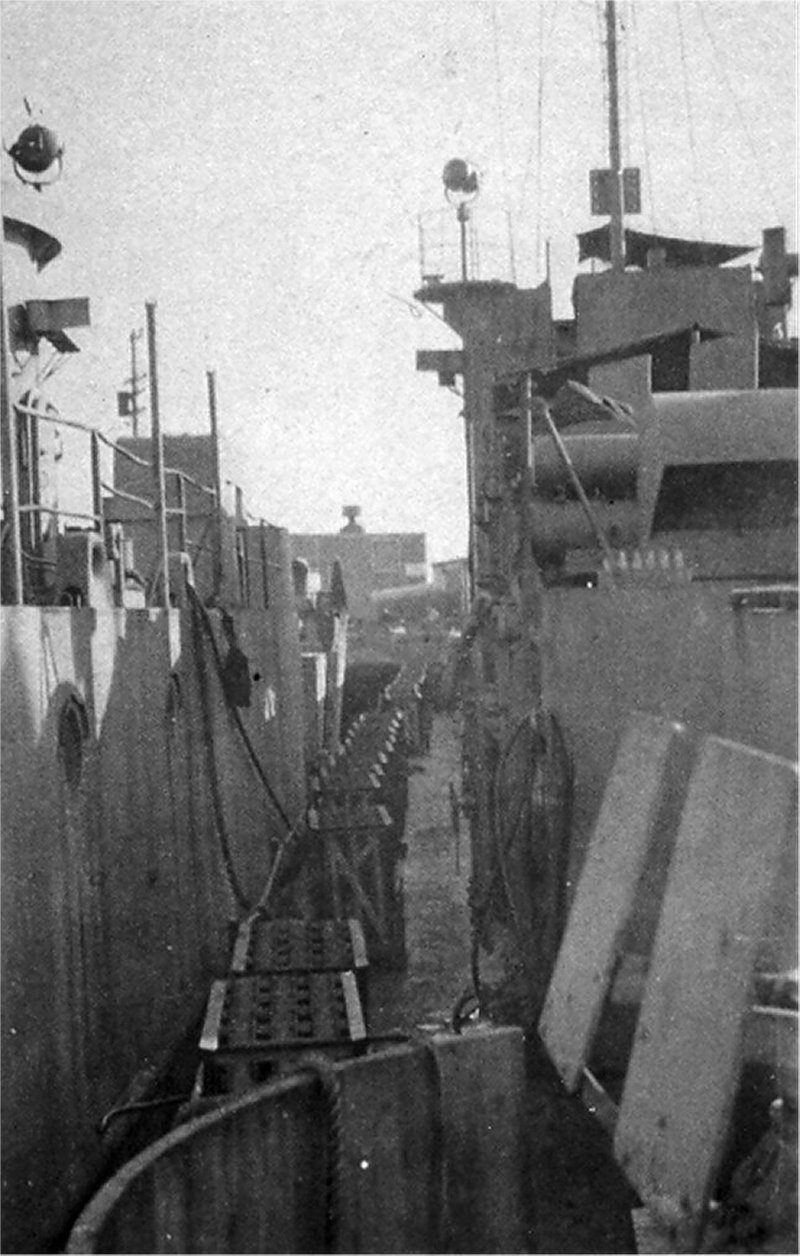 79k | USS LCI(L)-341 at Tacloban, Leyte Gulf in August 1944 while outfitting the ship with new rocket racks in preparation for the invasion of Japan. | Photos by Robert W. Van Keuren | |