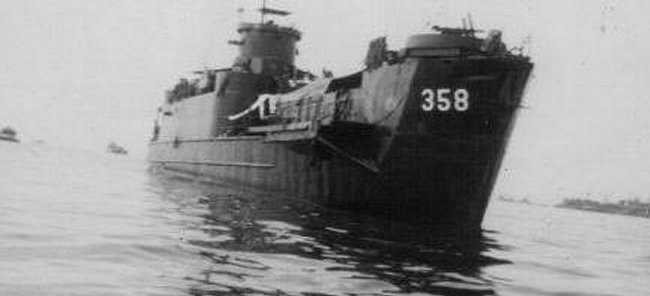 USS LCI(L)-358 beached at Ormoc, Leyte Island, Philippines while boarding troops, date unknown. Photo by James Gilbert Dudrow LCI(L)-358 |