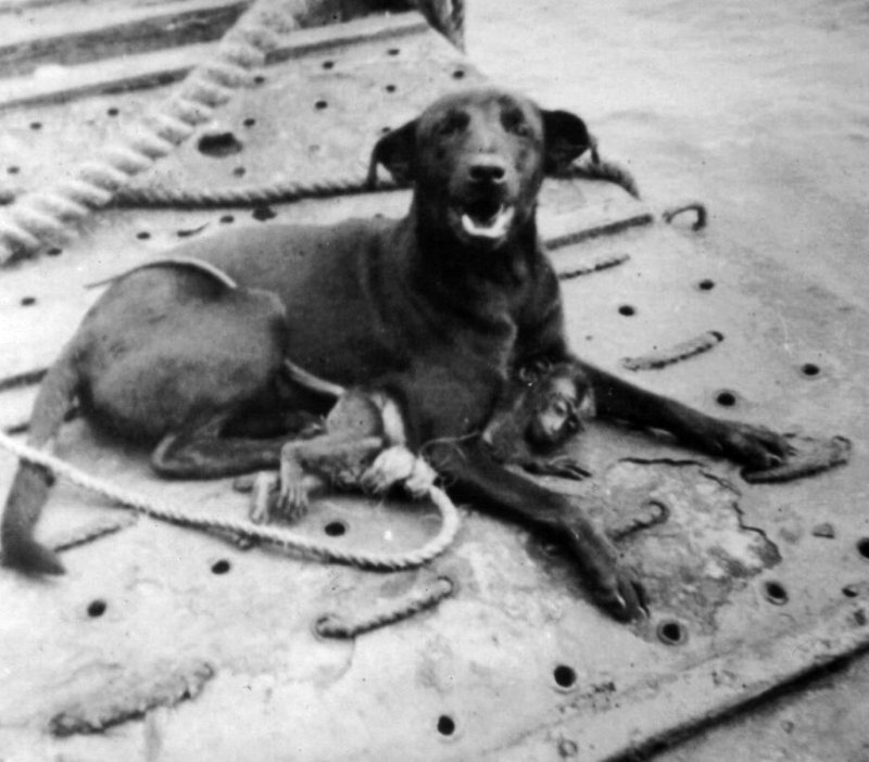 USS LCI(L)-358 mascots, dog and monkey. Photo by James Gilbert Dudrow LCI(L)-358 |