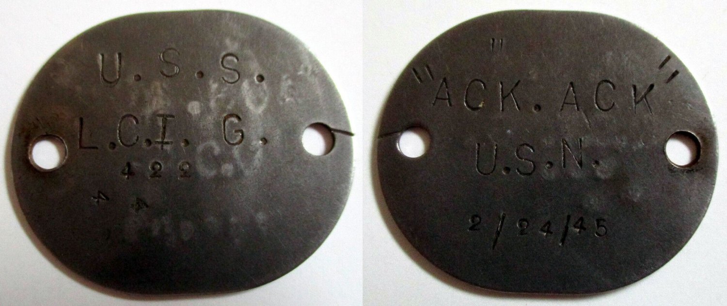 159k | USS LCI(G)-422 "trench art" dog tags. | Tommy Trampp | |