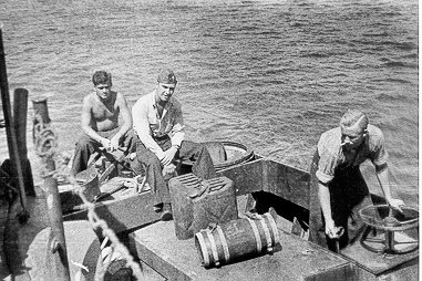 Left to right, O.B. White, R. S. Hudgins (the skipper), and Boedecker |