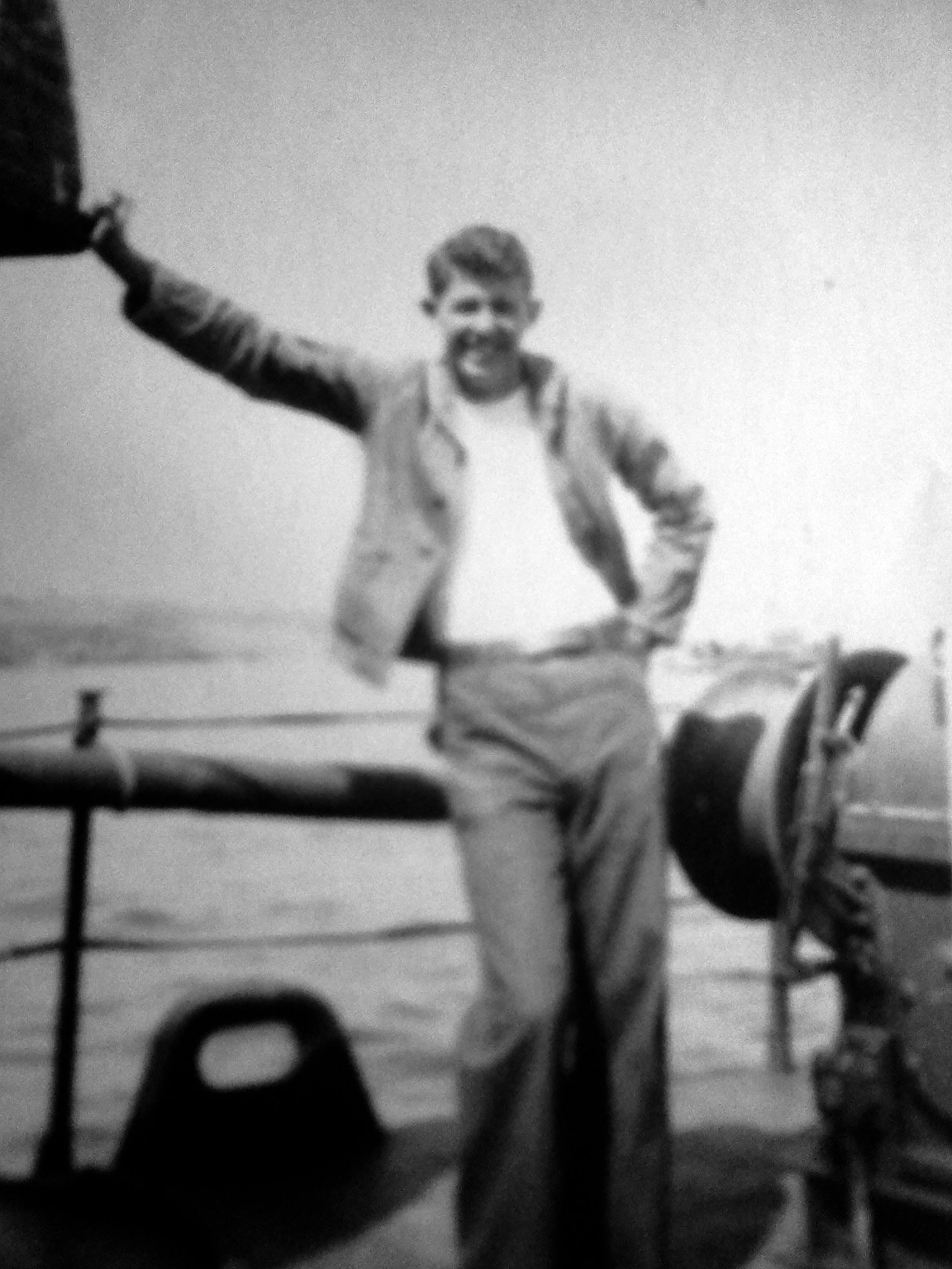 USS LCI(G)-471 crew member Charles Sutherland while the ship was off Iwo Jima in February 1945. Contributed by Barbara Sutherland Taylor. |