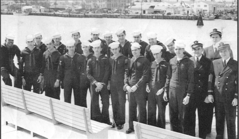 USS LCI(L)-573 crew photo taken in early1946, location unknown. Photo is from the USS LCI National Association's newsletter "The