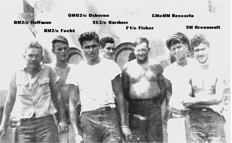 70k | USS LCI(R)-772 crew members standing in front of the ship's conning tower, date and place unknown. | Rev. Fr. Joel Osborne in honor of his father Tom Osborne USS LCI(R)-772 | |